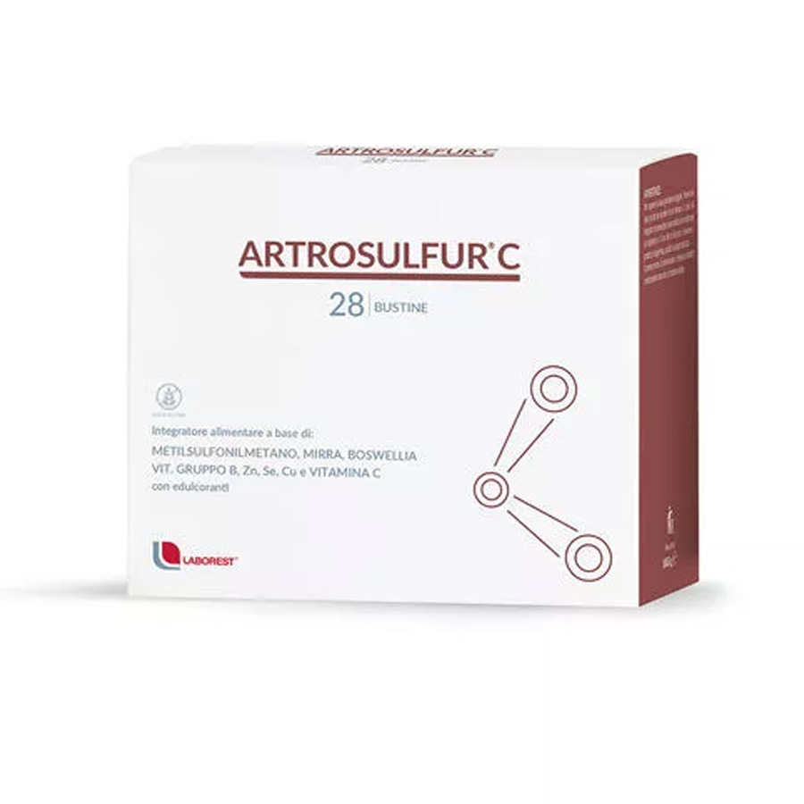 Artrosulfur® C conține o formulă complexă, cu acțiune sinergică, cu efect condroprotector, antiinflamator și analgezic, fără efecte adverse. Conținutul ridicat de Metilsulfonilmetan (MSM – 5g), complexul de vitamine B, vitamina C, sărurile minerale: zinc, cupru și seleniu și extractele de Boswellia Serrata și de Commiphora Myrrha, îl fac util atât în timpul terapiei cu antiinflamatoare și analgezice clasice, cât și după, pentru menținerea efectului în timp. În același timp, administrarea Atrosulfur® C îmbunătățește structura cartilajului și redă mobilitatea.