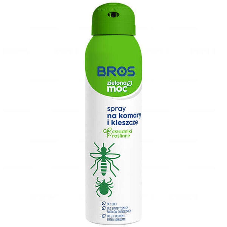 Sprayul împotriva țânțarilor și căpușelor Green Power, 90 ml, producător BROS, Polonia, este un spray repelant pe bază de ingrediente de origine vegetală, eficient împotriva țânțarilor, până la 6 ore, și a căpușelor, până la 2 ore. Datorită conținutului de aloe vera, acest produs îngrijește și hidratează suplimentar pielea, lăsând un miros placut și proaspăt, fără a lăsa pete grase pe piele sau pe haine.