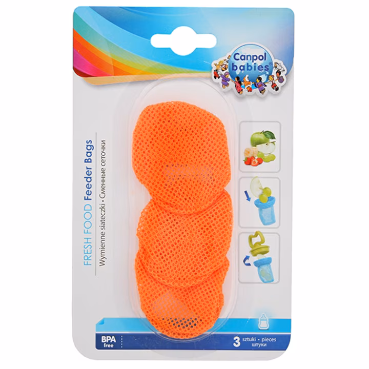 Set de 3 rezerve plasa pentru dispozitivul ce permite copiilor sa se bucure de placerile unui aliment proaspat, fara riscul de a se ineca cu bucati de alimente prea mari sau prea putin mestecate.