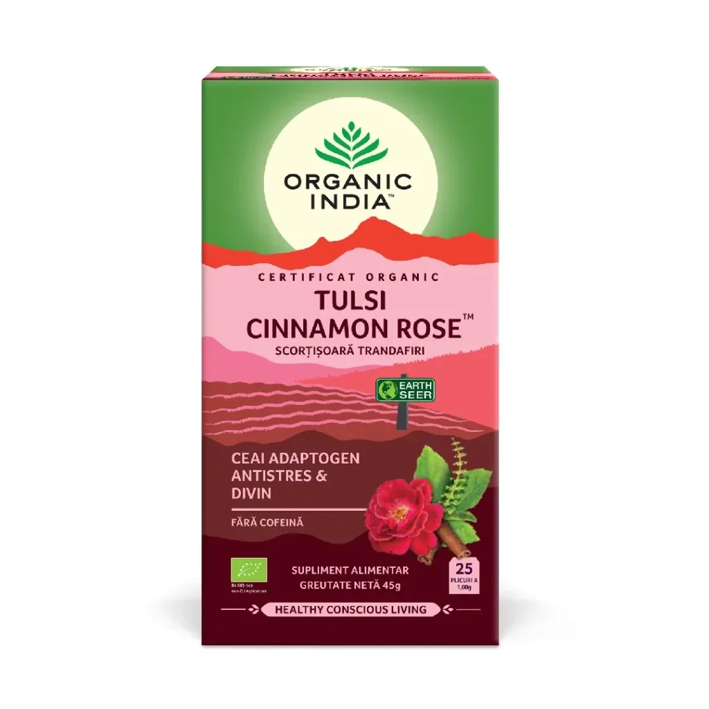 Ceai Adaptogen Tulsi Scortisoara Ceylon si Trandafir 25 plicuri BIO, ORGANIC INDIA