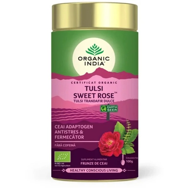 Ceai Adaptogen Tulsi Trandafir Dulce 18 plicuri Bio, ORGANIC INDIA