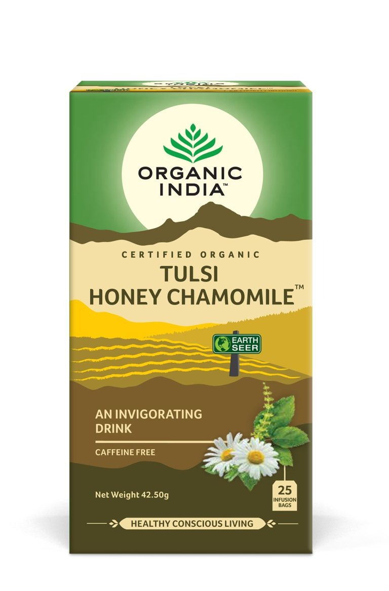 O combinație perfectă de Tulsi, miere și mușețel Ceaiul Tulsi Miere Mușețel, Amestec Adaptogen Revigorant, 25 plicuri este conceput pentru momentele de liniște. Acest ceai savuros cu aroma sa dulce și flori de mușețel cu note picante de Tulsi este perfect pentru relaxarea după o zi aglomerată.