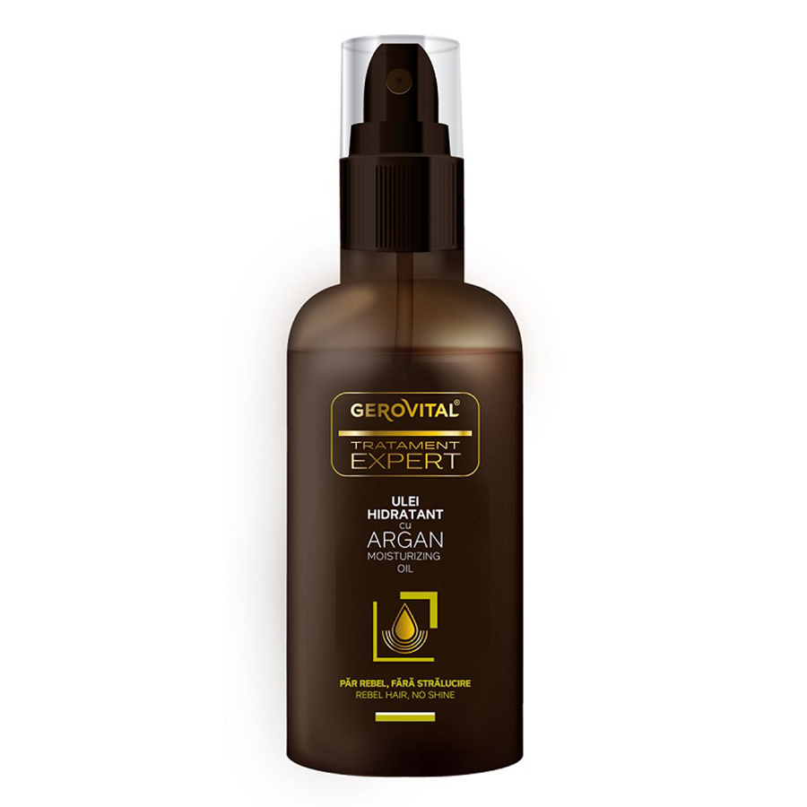 Uleiul Hidratant cu Argan pentru stralucire si elasticitatea parului, Gerovital Tratament Expert este special formulat pentru a disciplina firele rebele si pentru a oferi parului un plus de stralucire si vitalitate.