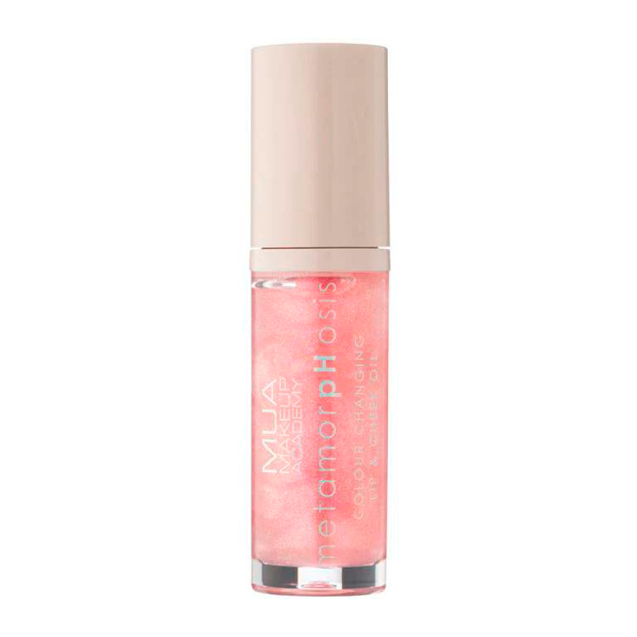 Luciul de buze si obraji MUA Metamorphosis Colour Change Lip & Cheek Oil „Birthday Cake”, produs in Marea Britanie, este un ulei care isi schimba culoarea: se aplica transparent si se adapteaza pH-ului pielii, transformandu-se in nuanta perfecta de roz intens. Textura sa este asemanatoare uleiului. Contine ulei de jojoba si vitamina E pentru a hrani pielea.