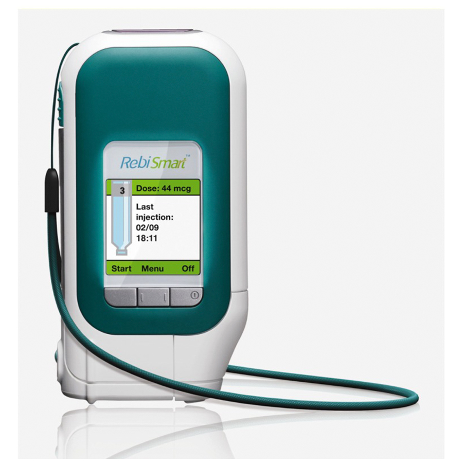 RebiSmart® 2.0 Autoinjector (Gratuit), produs de Merck, Germania, este un dispozitiv electromecanic pentru autoinjectarea unei doze presetate de Rebif® (interferon beta-1a) pentru tratamentul sclerozei multiple recidivante (RMS). Autoinjectorul pe baza de cartus are o interfata software incorporata, de dimensiuni mari, color, care permite pacientilor sa primeasca notificari pentru injectii si sa isi revizuiasca istoricul injectiilor. Prin intermediul aceleiasi interfete cu utilizatorul, furnizorii de servicii medicale pot personaliza diverse setari de confort al injectiilor, inclusiv viteza, adancimea si timpul, pentru a optimiza confortul pacientului.